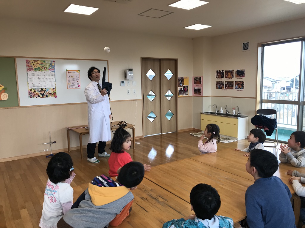 風で遊ぼう!今日のサイエンスは、風を使った実験でした!風を起こして折り紙を飛ばしたり、送風機でボールを浮かせたりとても楽しい実験でした♪特に送風機とボールを使った実験は、送風機を斜めにしてもボールが落ちなくて、子どもたちも驚いていました!