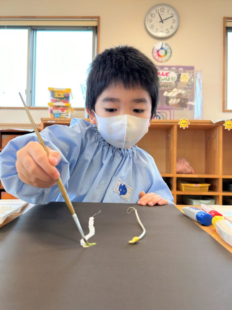 年長さんが絵画教室でもやしの絵を描きました🥬