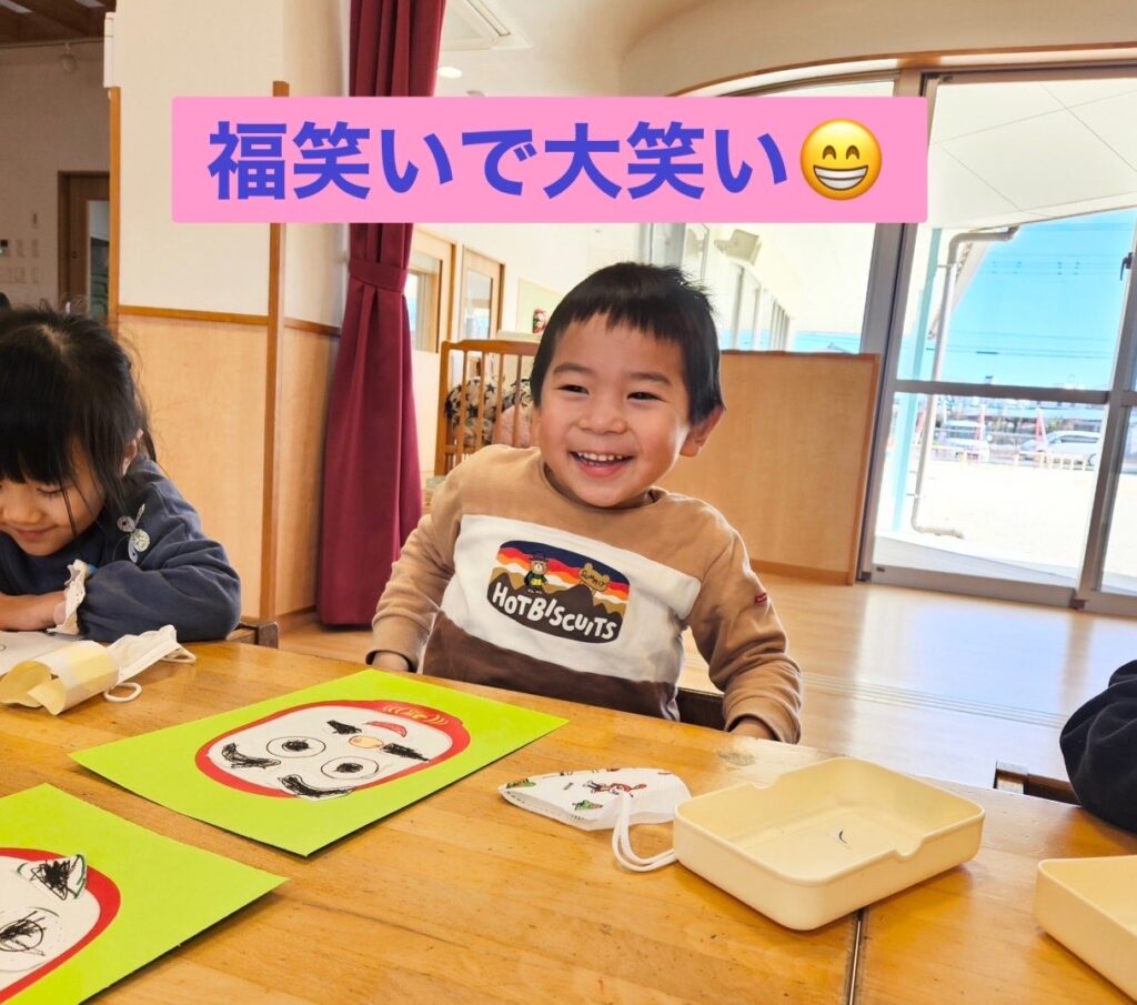 福笑いで大笑い☺お正月遊びの福笑いを作りました🎍顔のパーツの色塗りをしてはさみで切って、そのパーツをだるまの顔に置いてみました!置く場所や向きによって面白い顔になり、子どもたちも笑いながら楽しんでいました😂
