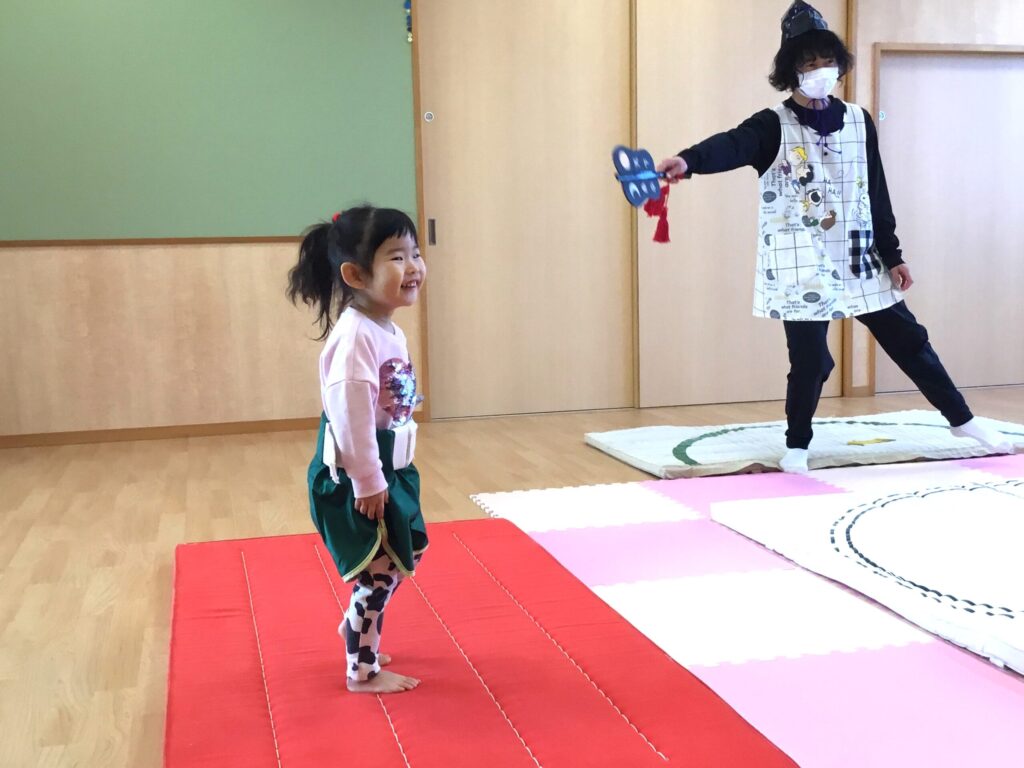 商工会議所様から子ども用の回しをお借りして、お相撲さんになりきって取り組みを行いました!