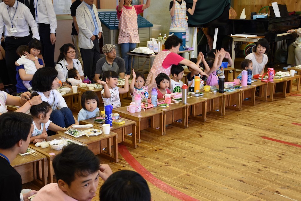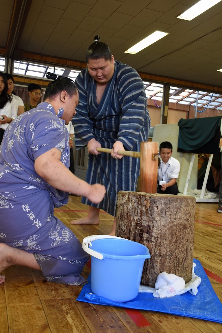 お餅つきと、ちびっこ相撲6月2日湊部屋のお相撲さんがサムエル幼稚園にやってきて、みんなと餅つきや、ちびっこ相撲を行いました。お相撲さんをお出迎え。お相撲さんにもお餅をついてもらいました。みんなでマワシを巻いてお相撲をしました。どうやったら勝てるのか、作戦を立てて相撲をとってみました。ちびっこ相撲の後は、ついたお餅とおにぎりでご飯をみんなで食べました。お相撲さんも楽しそうです。あっという間にお別れの時間。みんなで記念撮影をしました。最後はみんなでお見送りをしました。